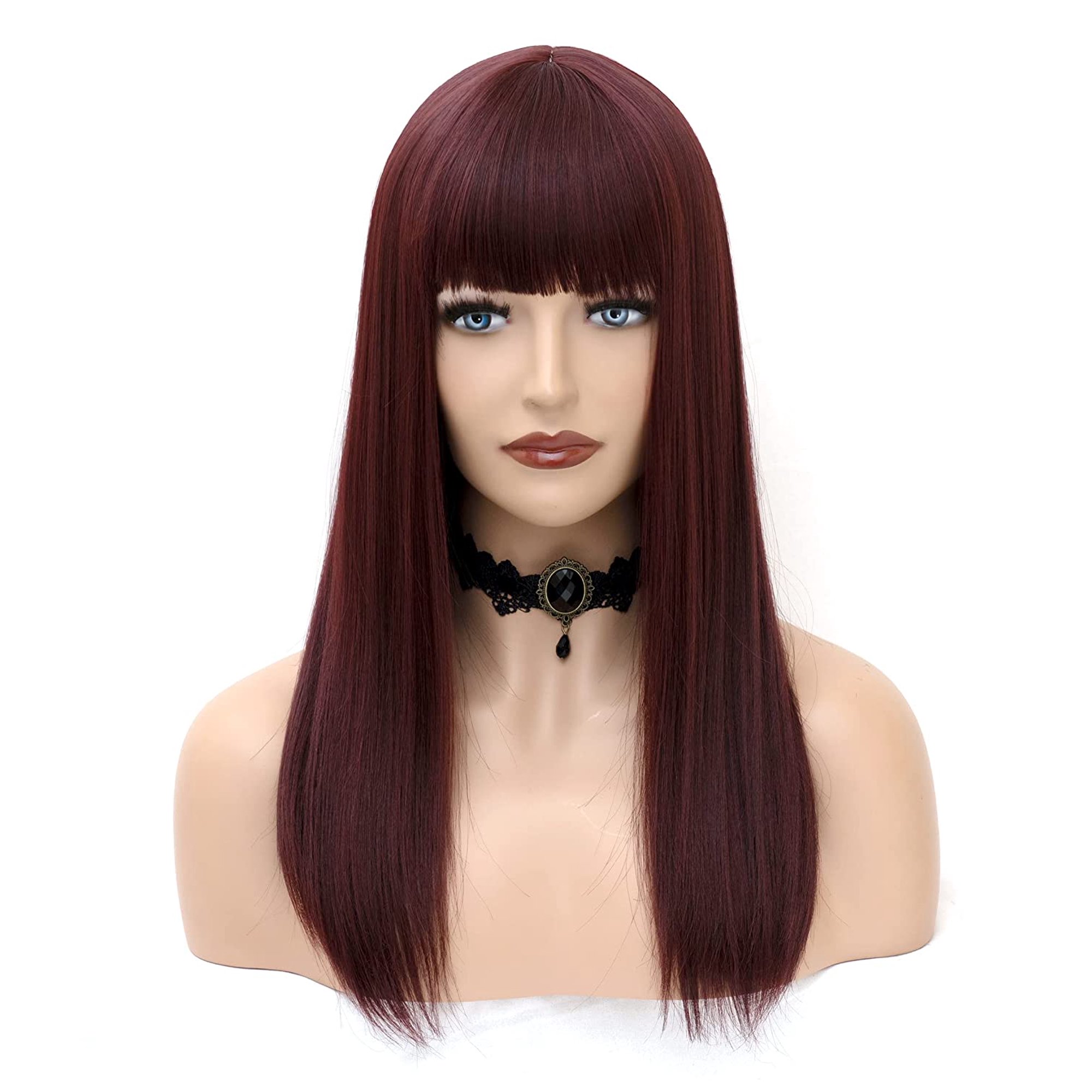 Luo Rugelyss Long Burgundy Straight Wig With Bangs 22 Inches Natural Synthetic Wigs For Women Or Witch Cosplay Walmart Canada